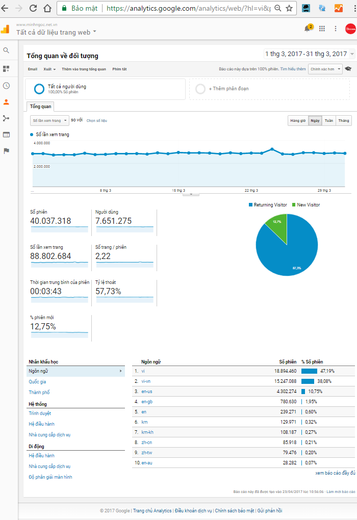 Sau đây là số liệu 1 tháng của Google đối với 2extend.eu.com.vn: từ 01-03-2017 đến 31-03-2017